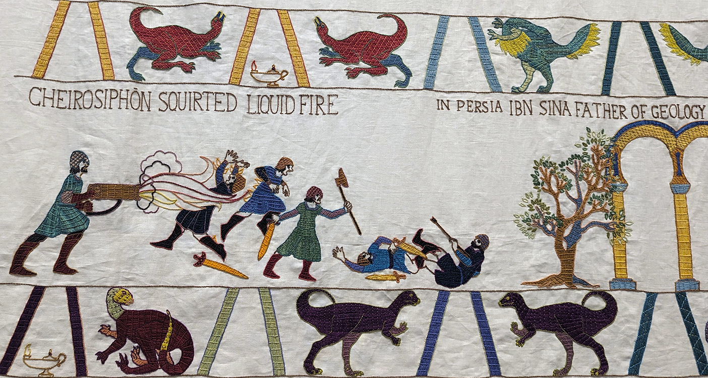 Above: Detail of “11th-Century Persia to 19th-Century America,” from “The Black God Tapestry,” Sandra M. Sawatzky, 2008-2017