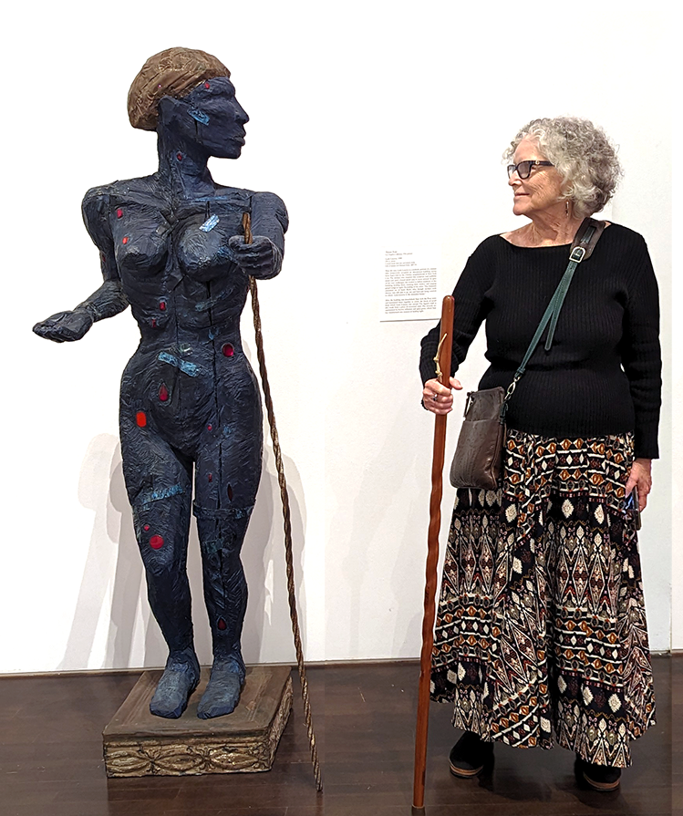 Above, left to right: “Petals,” Snohetta’s art installation/shade structures; and “Lady Lazarus,” Alison Saar, 1988, in “Fashionable Sticks,” Lamar Spencer, 2024