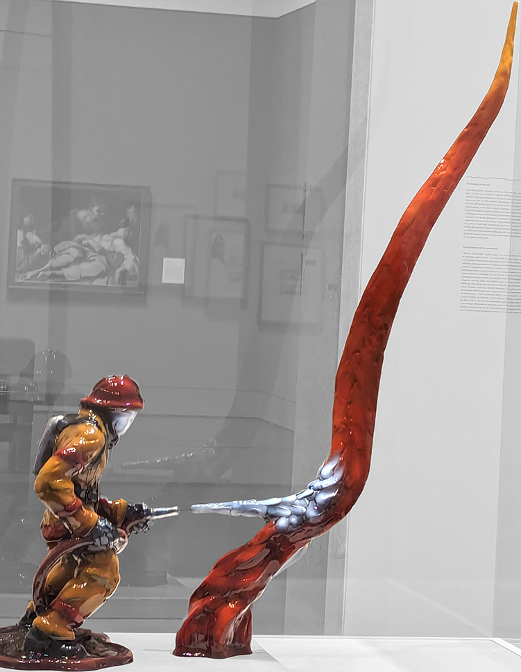 Above, left to right: “Salve Regina,” Daniel Martin Diaz, 2004; “Fire Man,” Luis Jimenez, 1996-1997; and “Daughters of Wounds and Relics,” Dario Robleto, 2006