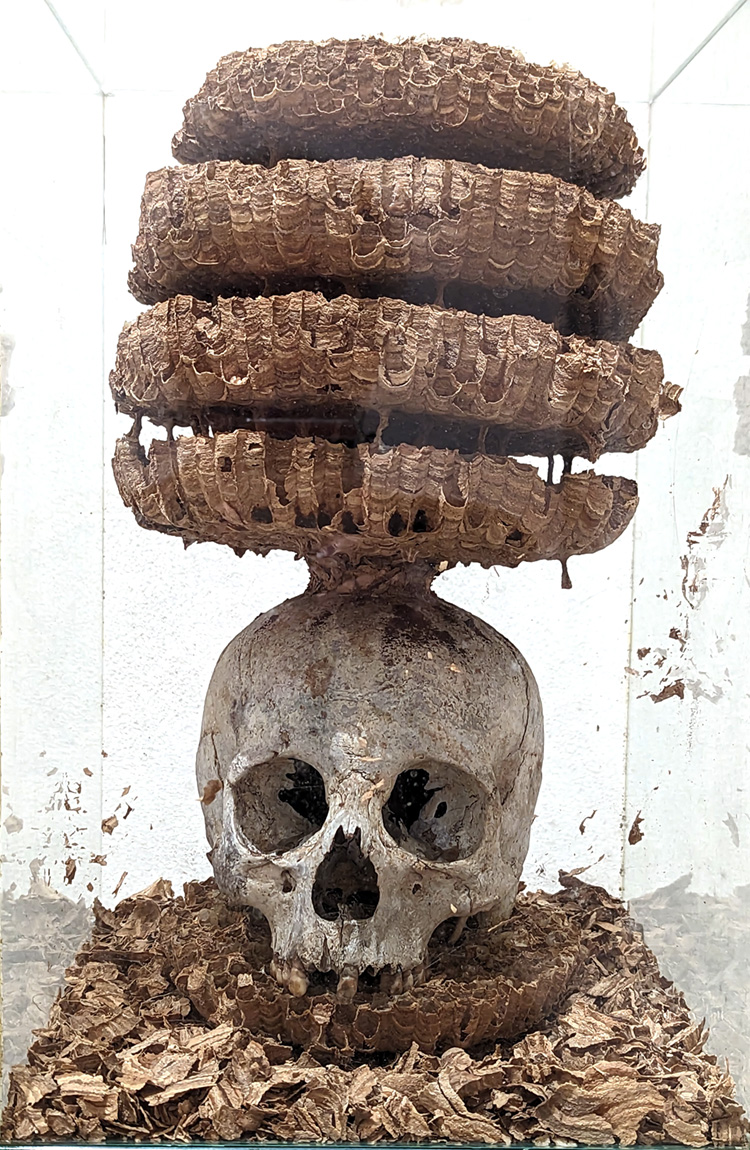 Then, there’s “Memento Mori” from Phillips’ series of “Treated Skulls:”