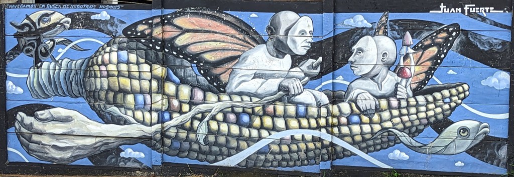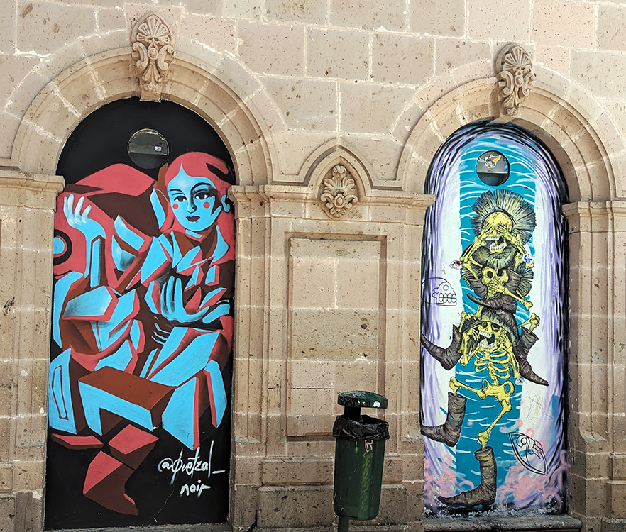 Sharing snatches of artwork brightening up walls and doorways we encountered while meandering the streets of Morelia. Some of these murals resulted from Morelia’s Festival Internacional del Arte Urbano in 2022. These photos were taken prior to the fall 2023 event, so presumably there is a fresh crop greeting visitors now.