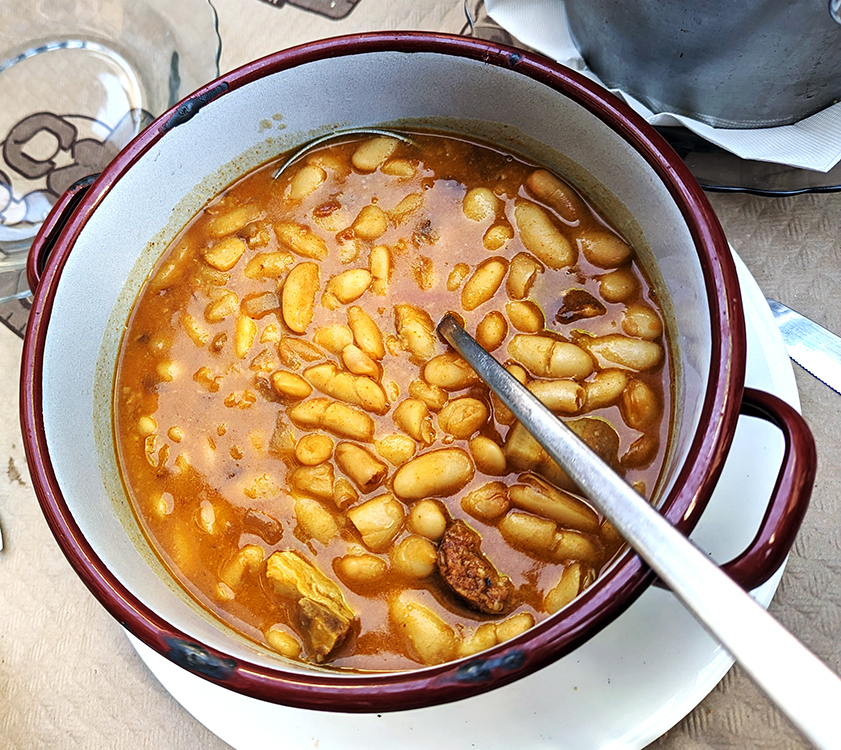 Bean stew sounds and might appear ho-hum, but grandmother’s recipe for this fabada Asturiana produces a wealth of flavors. The large white fabes de la granja are stewed with pork shoulder, pancetta, chorizo and morcilla, blood sausage, in a thick broth boosted by a dose of sweet paprika.