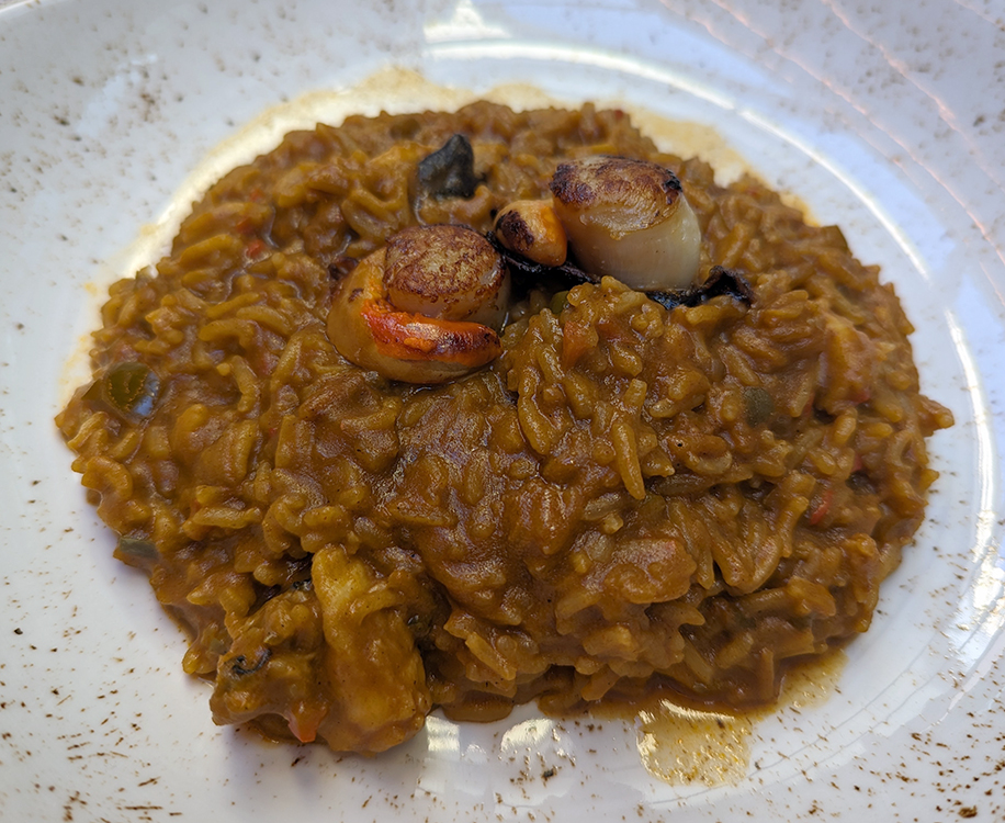 The pair of zamburinas, scallops, perched atop the arroz meloso with rape were the high point of the meal. We stopped short of the dessert course. The gastronomic experiments change seasonally, so you might have better luck. The handsome sofa-filled bar area does look perfect for enjoying a cocktail or a bottle of cava.