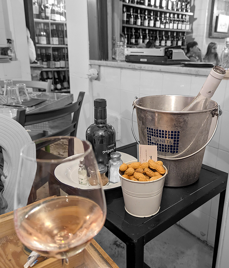 The total opposite of formal is the always bustling Osteria Mangia e Bevi, filled with locals in search of simple familiar foods served in a rustic, relaxed setting. They all know what they’re ordering, and servers prefer no indecisiveness when they zip up to the table to get yours. As a daughter of a peanut broker, I had to love a place that provided a bucket of roasted peanuts in the shell alongside your wine bucket.
