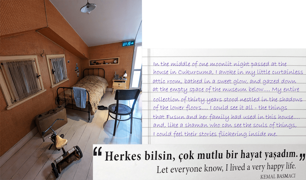 The top quotation from Kemal’s thoughts in Orhan Pamuk’s 2009 novel, Museum of Innocence, does not appear until Chapter 68 of the 83-chapter book. The entire chapter is devoted to these fetish souvenirs of unobtainable love.