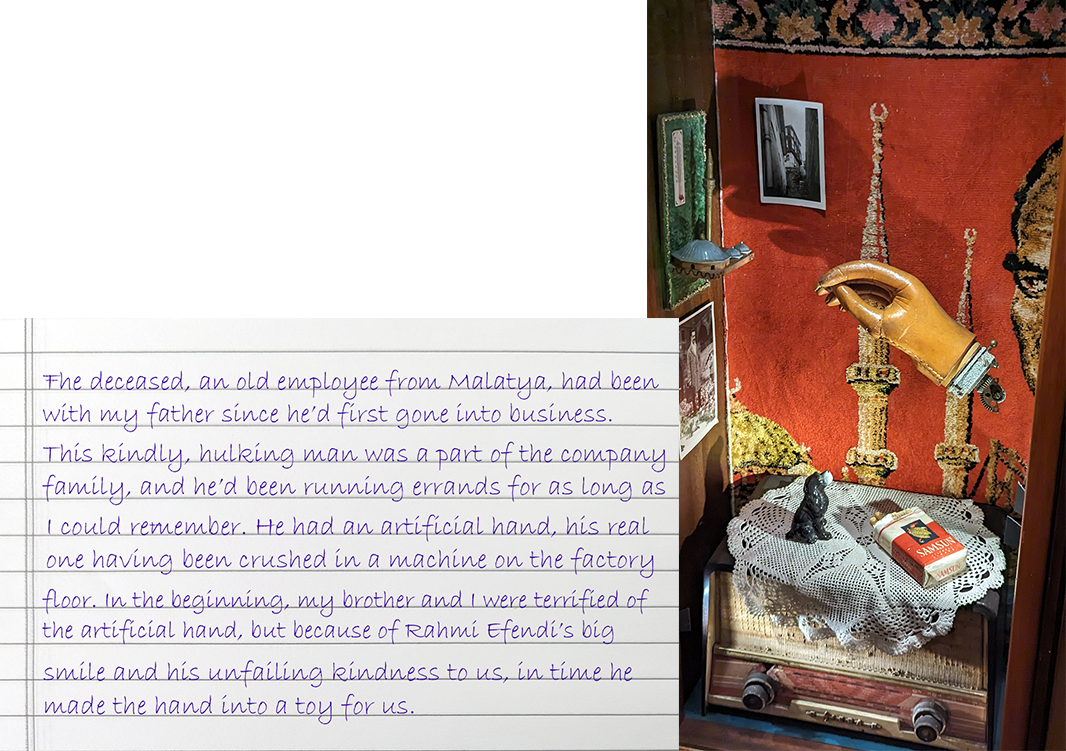 The top quotation from Kemal’s thoughts in Orhan Pamuk’s 2009 novel, Museum of Innocence, does not appear until Chapter 68 of the 83-chapter book. The entire chapter is devoted to these fetish souvenirs of unobtainable love.