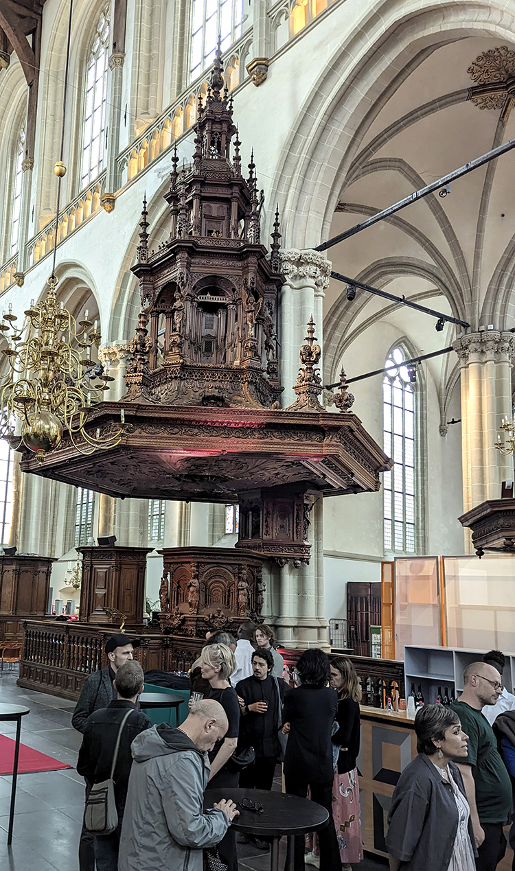 The Nieuwe Kerk is hardly “new,” having been consecrated in 1409. While the “Royal Church” is still used for royal weddings and coronations, it also serves as a venue for important exhibitions, such as this one. With its soaring vaulted ceiling, floors embedded with tombs and cherubs overlooking all, the dramatic setting emphasized the seriousness of the meaningful topics delved into by the award-winning photographers.
