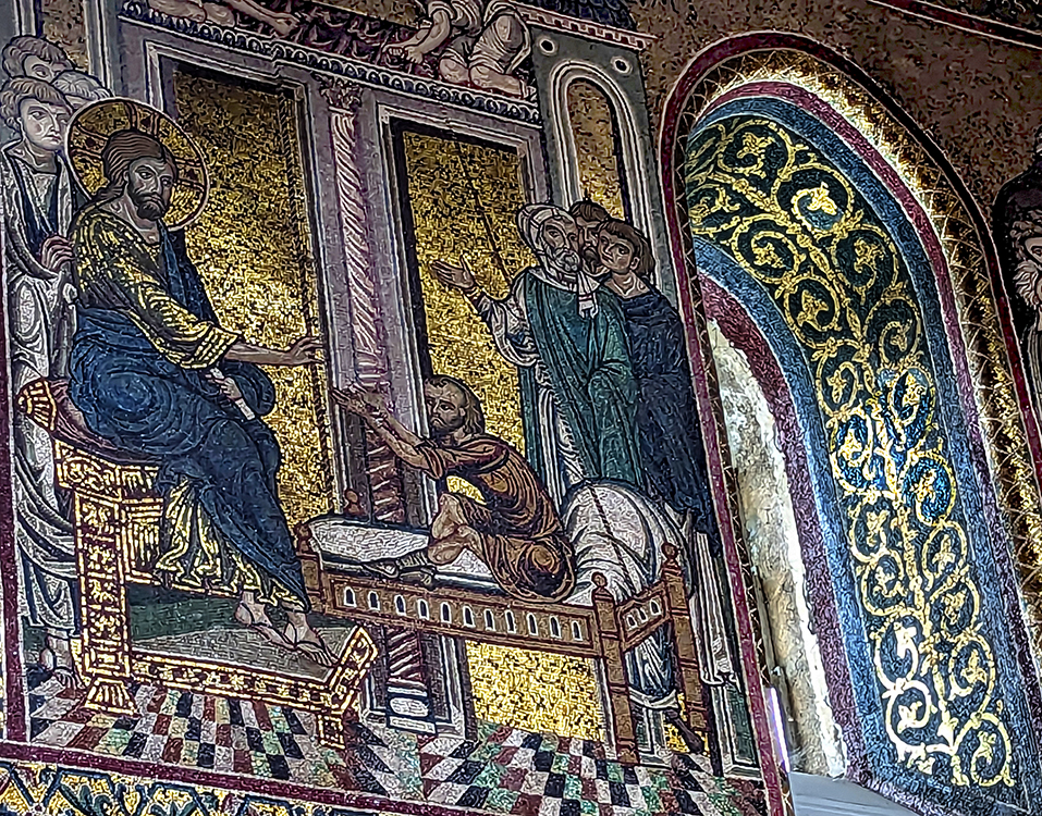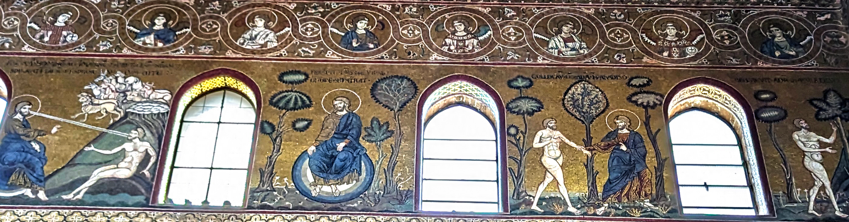 Above: Byzantine-style 12th-century mosaics relate Biblical stories inside the Cathedral of Monreale