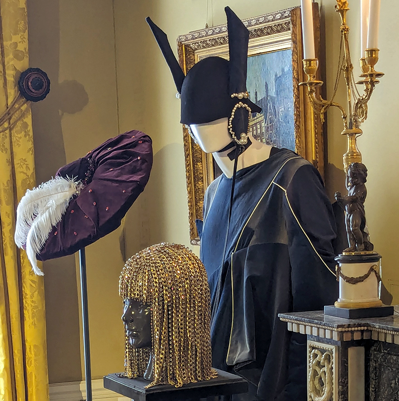 The pair embraced the “new.” And they certainly welcomed spirited creatives into their homes. The Vineyard’s exhibition envisioning what to wear to a ball in this house seems on target. Why not combine an armor vest with a full Victorian skirt?