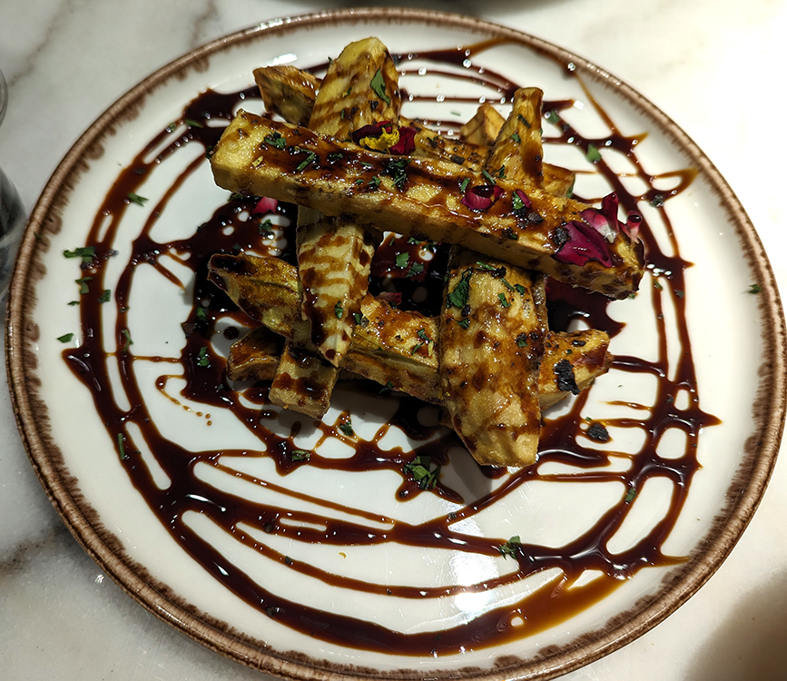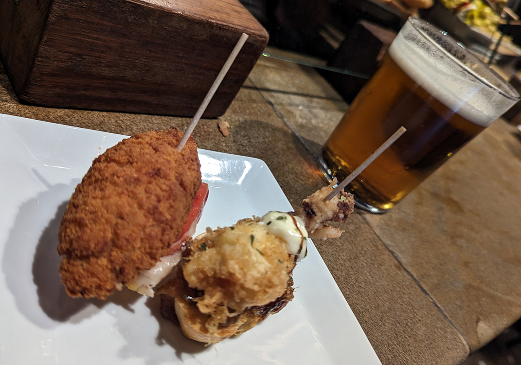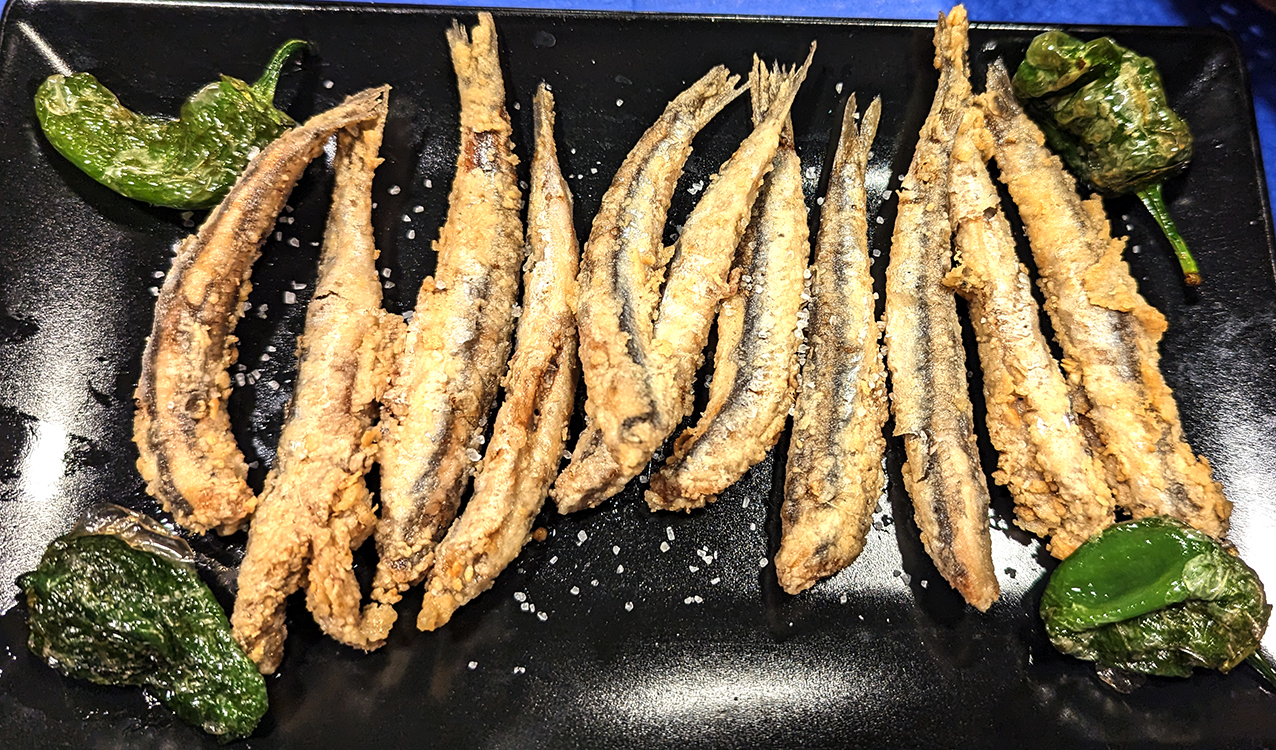 All portions were generous. Unfortunately, the sauce on the tiger mussels was generous to the point of drowning them. Steamed mussels would be a better choice. The kitchen sure knows how to fry. We devoured our platters of fried padron chiles, anchovies and squid.