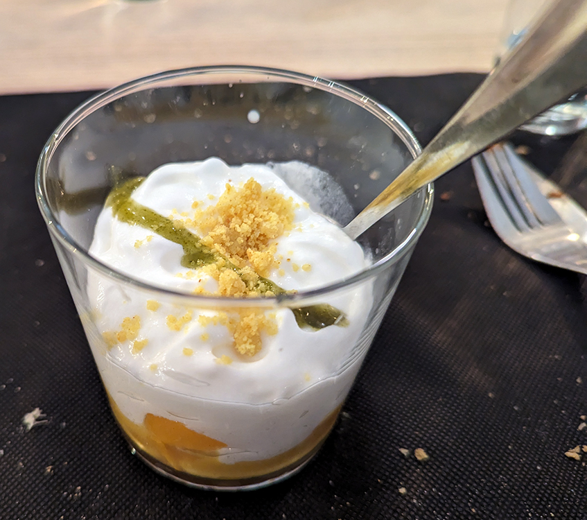 We found ourselves ordering dishes we might not have ordered faced with a broader menu, but all were palate-pleasing. The morcilla pate was silky smooth and rich. Parmesan cheese and jamon spiked up the flavor of a soft-cooked egg. A dense spicy broth made a garbanzo and calamari stew a meal in itself. Wild seta mushrooms and truffles filled croquetas, and a light peachy dessert in a glass finished off our meal.