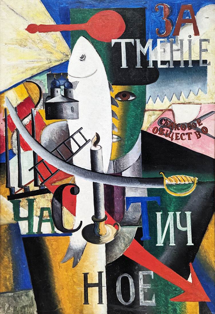 Above left: “The Three Comrades,” Fernand Leger (1881-1955), oil on canvas, 1920. Middle: “The Fertile Soil,” Gustave de Smet, oil on canvas, 1917. Right: “An Englishman in Moscow,” Kazimir Malevich (1879-1935), 1914.