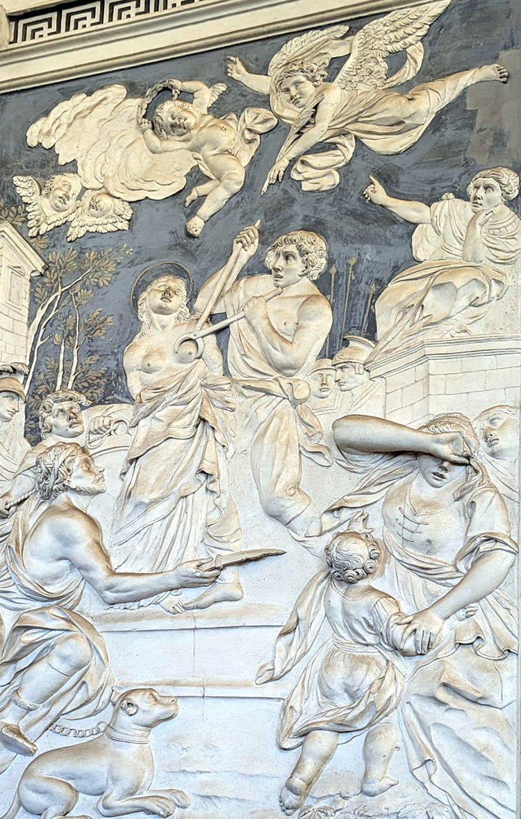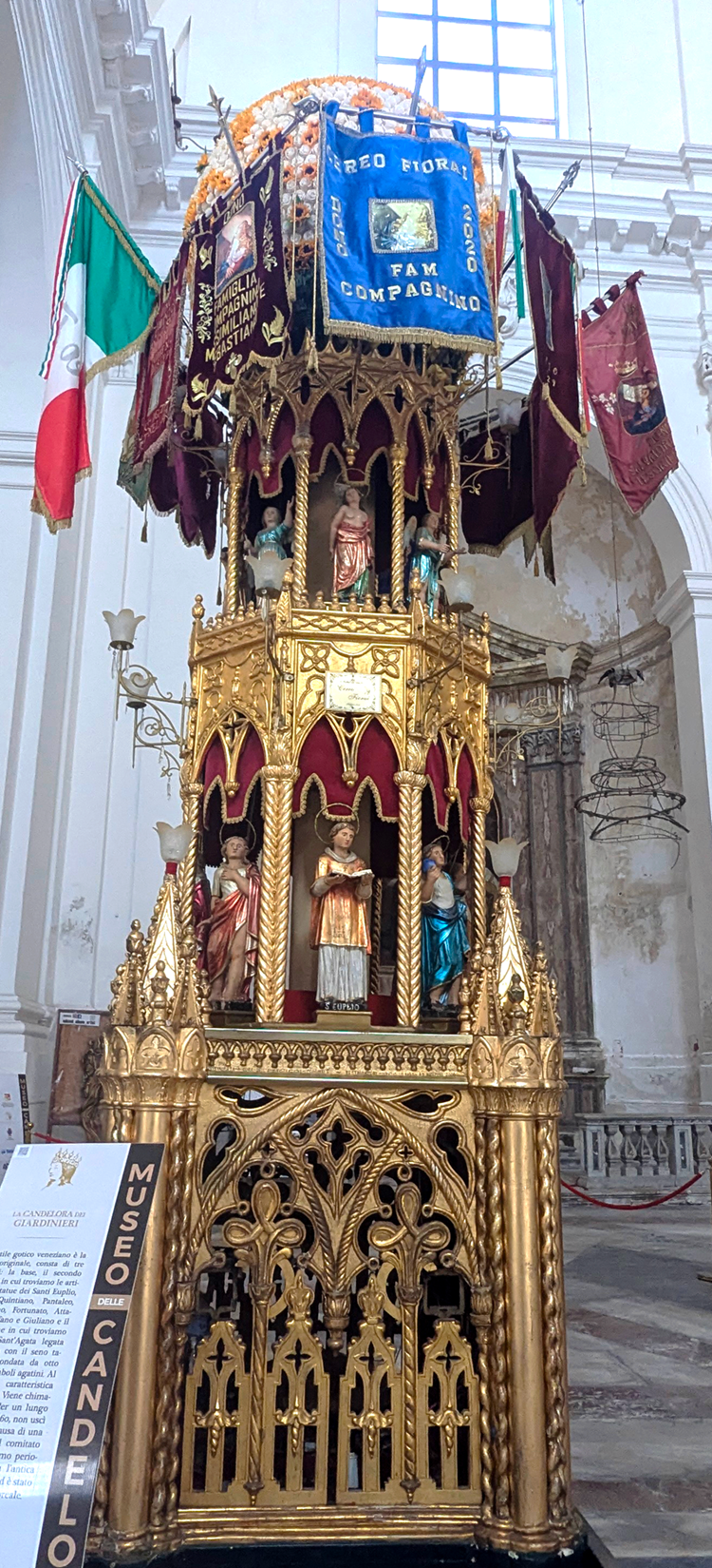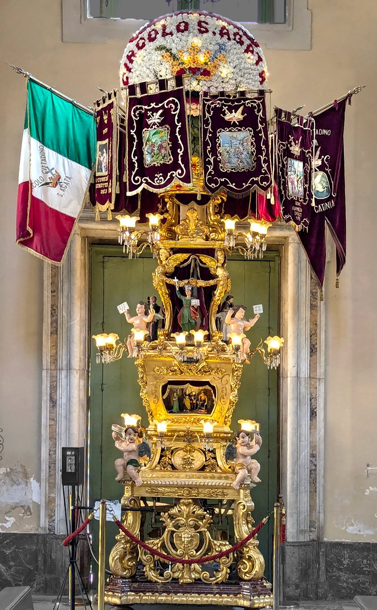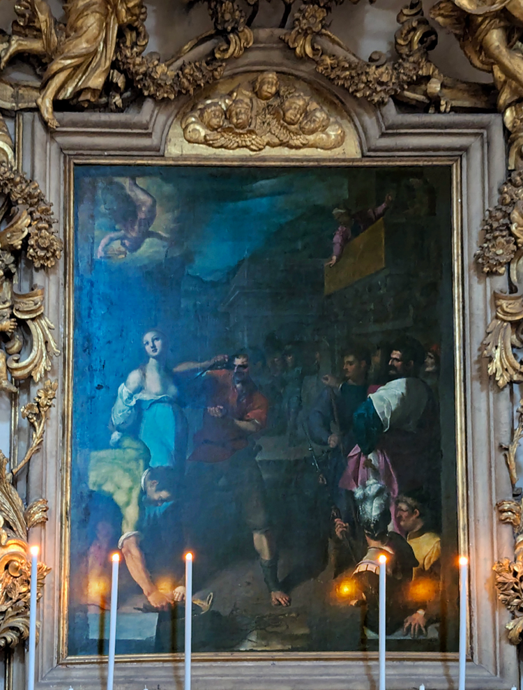 Some of Saint Agatha’s patronages are obvious from the stories of her martyrdom, which I related to you in a post from an earlier visit to Siracusa. I won’t dwell on those gruesome details here, but you can easily get the picture from these images below, a couple from Palermo but mainly Catania. There are also photos of hand-carried floats used in Catania’s huge multi-day celebration of the city’s patroness.