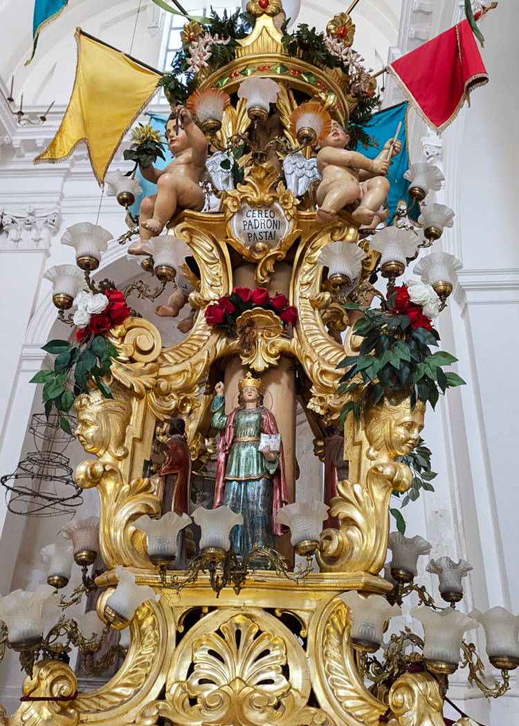 Above: Statue of Saint Agatha, affectionately known as Santuzza, in front of the Basilica di Sant’Agata in Catania