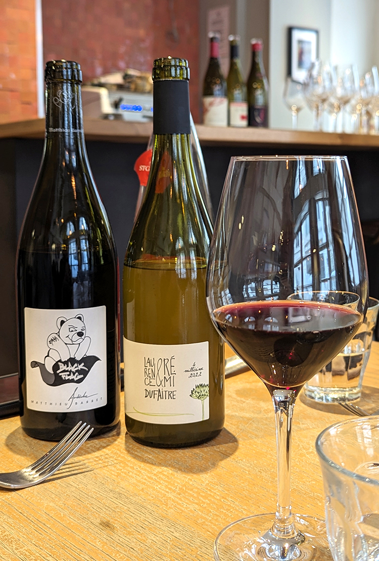The pig in the name Le Cochon qui Boit intimidated me at first. I knew I wasn’t ready for a menu that goes all whole-hog-centric, but this is a drinking pig. That sounded more up my alley. Once inside gazing at the daily menu, I realized one even could graze all-vegetable there if desired. A red cabbage and hazelnut salad as an amuse bouche quickly confirmed the kitchen’s talents in that arena.