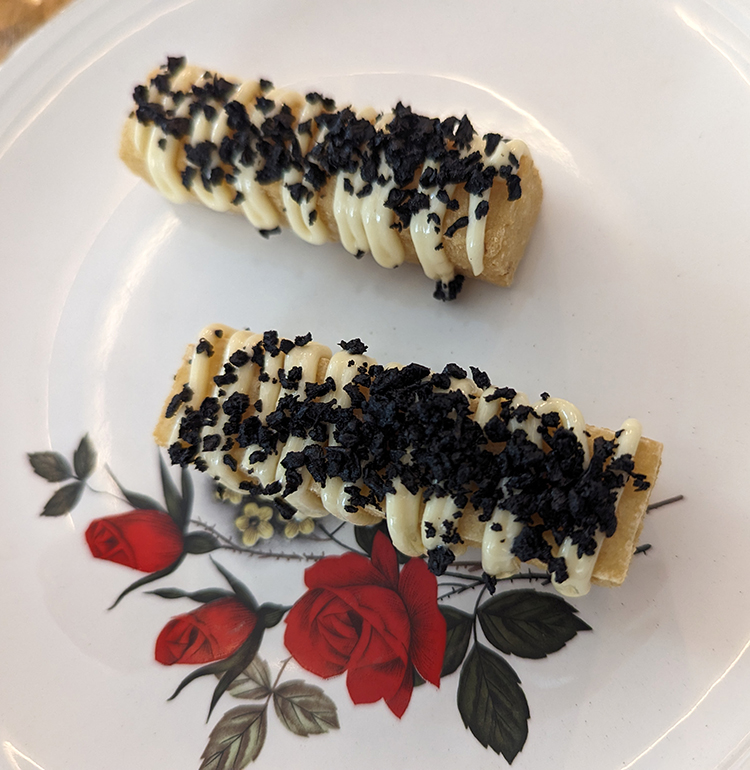 Some of the everyday empanadas definitely have upscale innards. For example, Hercule is filled with a mozzarella and feta fondue with leeks, onions, cauliflower and basil. Ruelle fumee features pork shoulder braised in white wine and honey with sweet potatoes and onion. Ham and cheese oozes with emmental and raclette cheeses and is available in a truffled version. Plan to grab one.