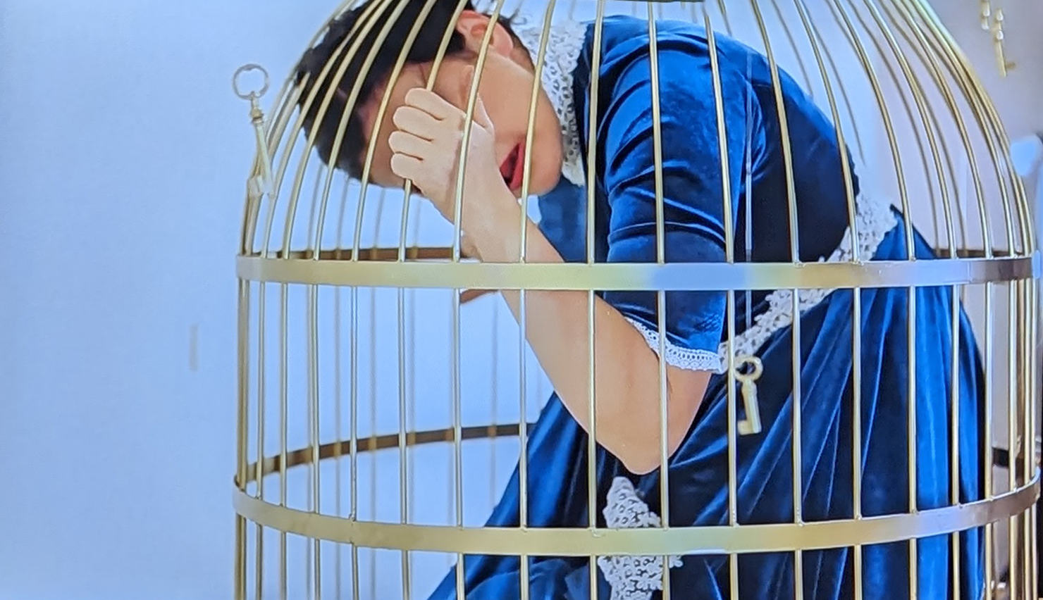I found her don’t-touch-me dress as claustrophobic and confining as the cage.