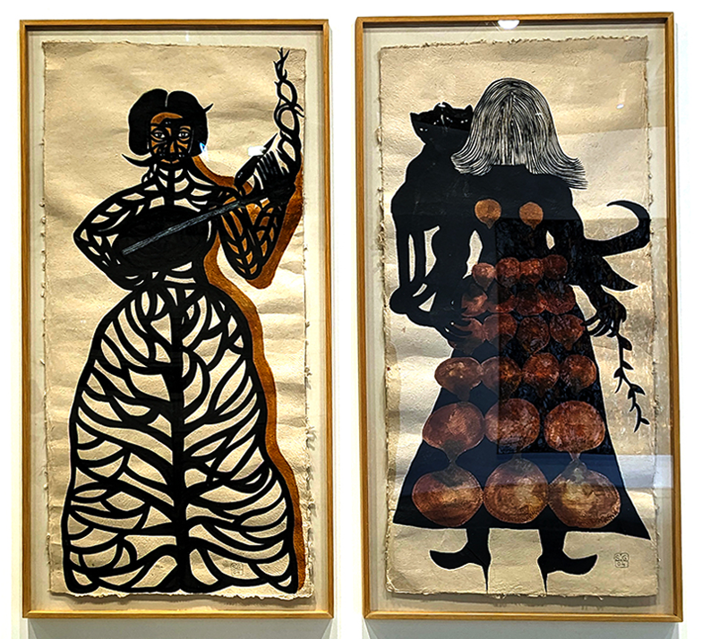 Above left: “Shoe Shiner,” Nes’e Erdok (1940-), 1979. Right: “Feast at the Prison,” Semiha Berksoy, 1999.