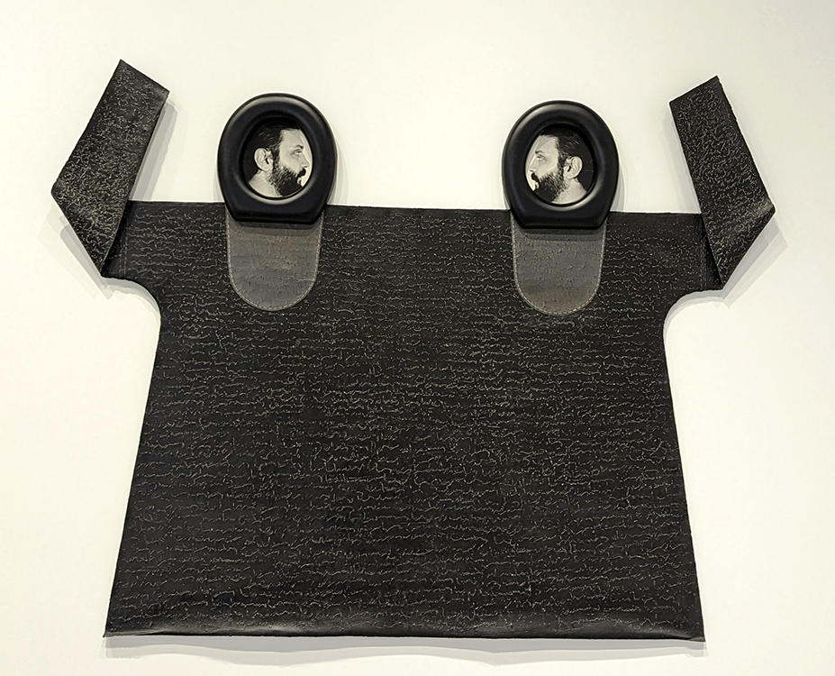 Top left: “Straitjacket,” Balkan Naci Muslim, 1990. Right: “Blackboard with Dressed Mannequin Hand,” Aydan Murtezaoglu, 1993. Bottom left: “Skinless,” Inci Eviner, 1996.