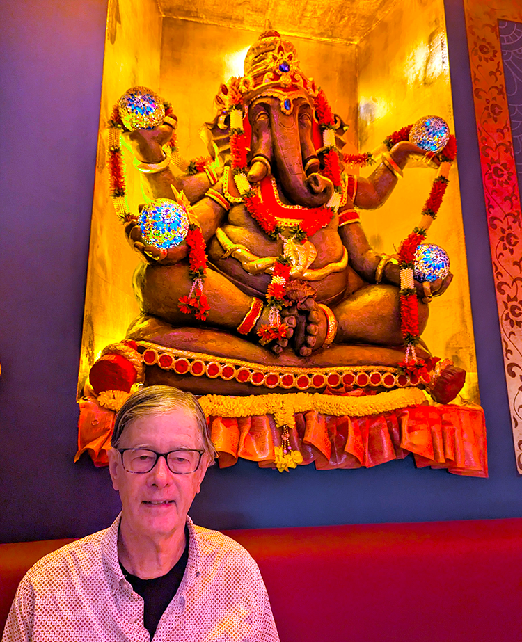 Plump vegetable samosas made a nice starter. Accompanying chutney perked up the flavor of the shrimp with chickpea batter, spinach paneer and vegetable biryani. Lemon ice cream would be refreshing on its own, but we ordered it vodka-spiked – even better.