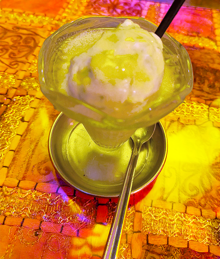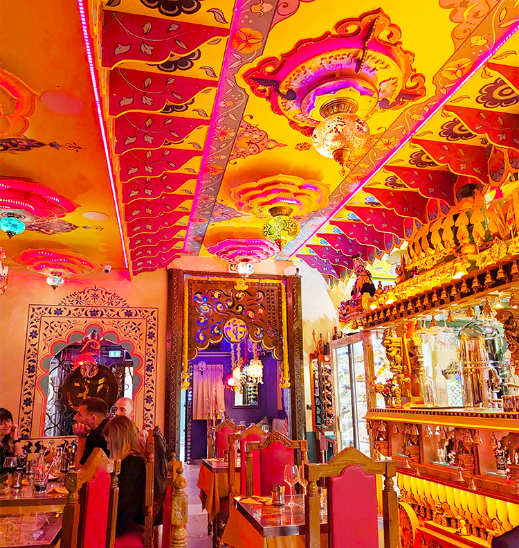 Diving back into the heart of the tourist zone transported us to Indian Lounge, a place with such over-the-top stereotypical kitschy decor that it works. No surface is spared from ornate additions or pops of color; you will find your face and food take on a yellow-orange hue.