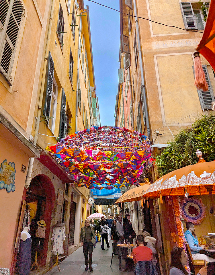 If you enjoy dining surrounded by other visitors from around the world, Le Safari is a bustling spot for dishes al Nicoise. Traditional stuffed vegetables, petits farcis Nicois, were nicely paired with arugula. The grilled red peppers with olive oil and anchovies were addictive. I opted for a demi-portion of a classic salade Nicoise, good and fresh even if a bit awkward to consume.