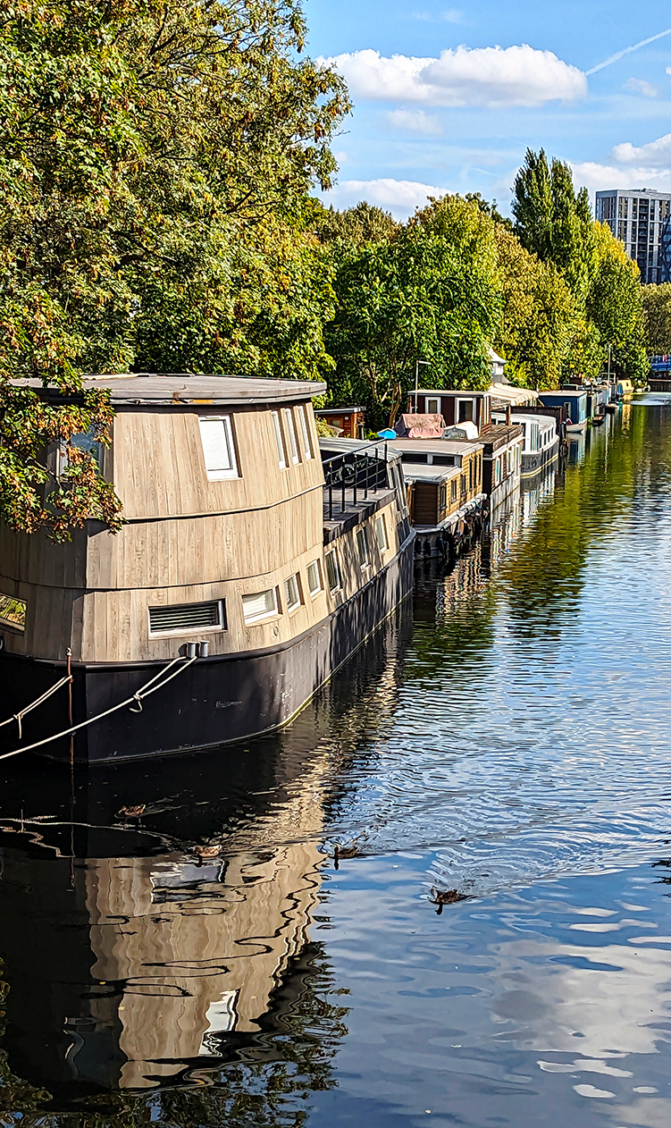 Above: Houseboats docked along a London canal