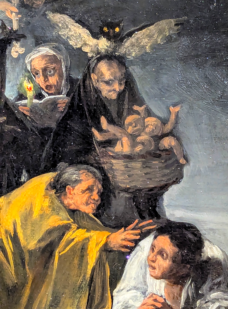 Above: Details of “The Witches” and “The Witches’ Sabbath,” Francisco de Goya y Lucientes (1746-1828), 1798, Lazaro Galdiano Museum.