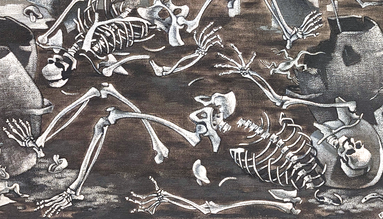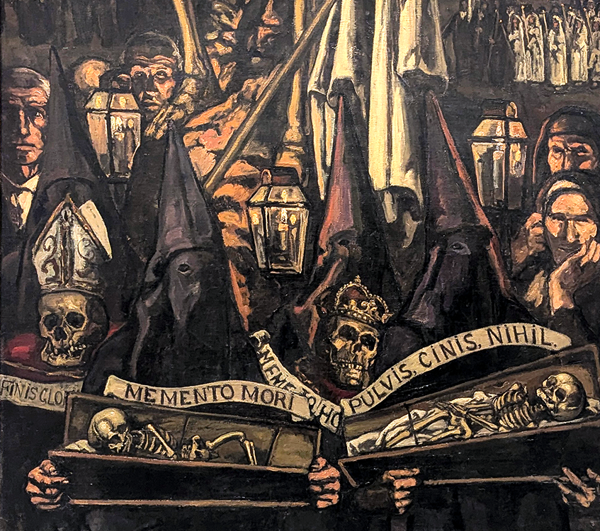 Above left: Detail of “Procession of Death,” Jose Gutierrez Solana (1886-1945), 1930, Reina Sofia. Right: Detail of “Skulls,” Andy Warhol (1928-1987), Museo Nacional Thyssen-Bornemisza.