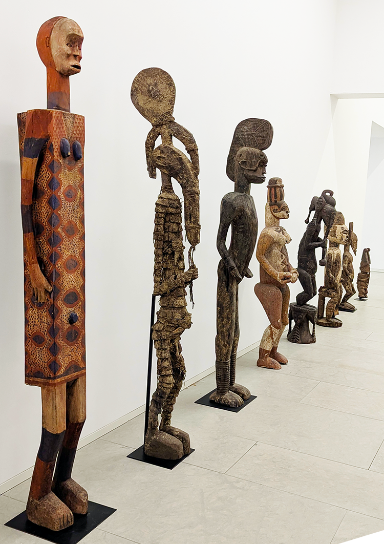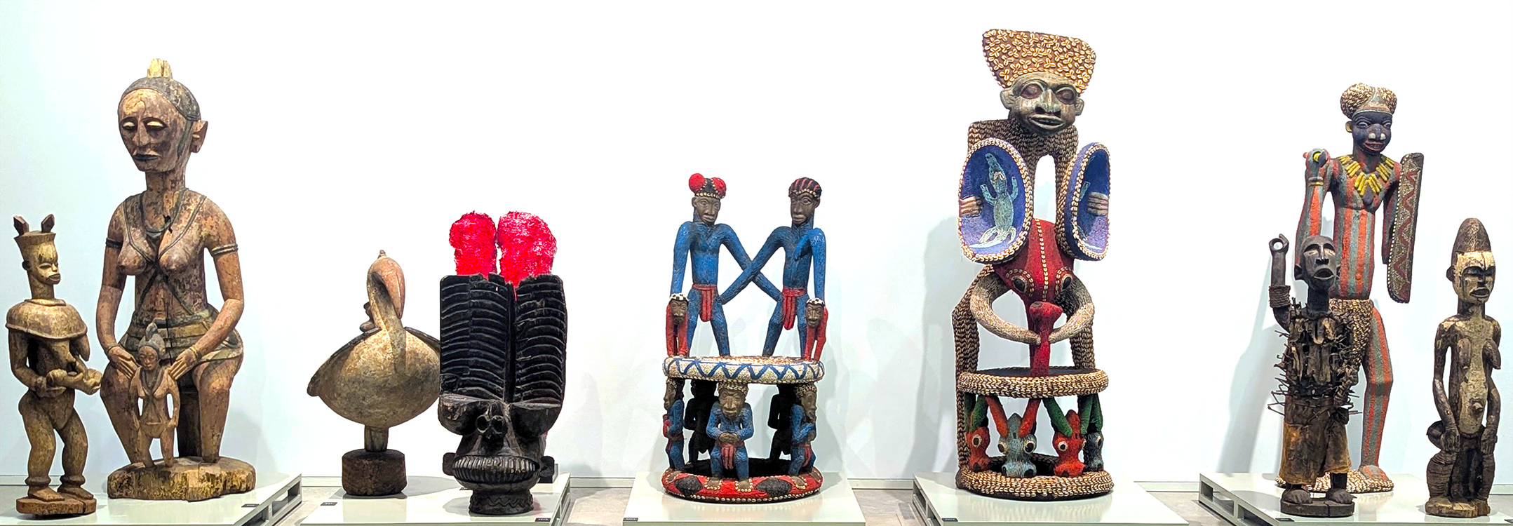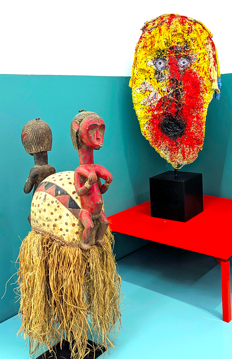Linked by invisible threads, the objects seem to talk to each other independently of our presence. An African fetish points to a pre-Columbian vase; a skull imagined by Jose de Guimaraes contrast with a bronze object from ancient China; statuettes speak with paintings without time separating them. As the objects gaze at each other…, it becomes evident that the associated narratives are infinite. The objects ask: ‘How should we live together?'”