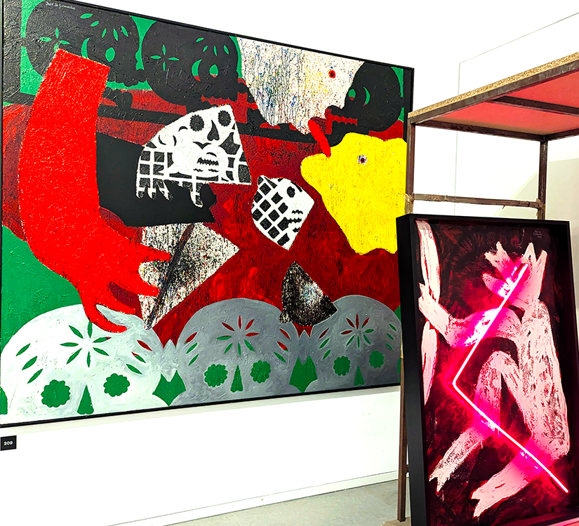 Interrupting the conversations he has crafted between his art and that of others is not intended. Yet, these images grabbed from the 1,128 works are presented randomly on my part. Hoping they’ll ignite interactive dialogues for you.