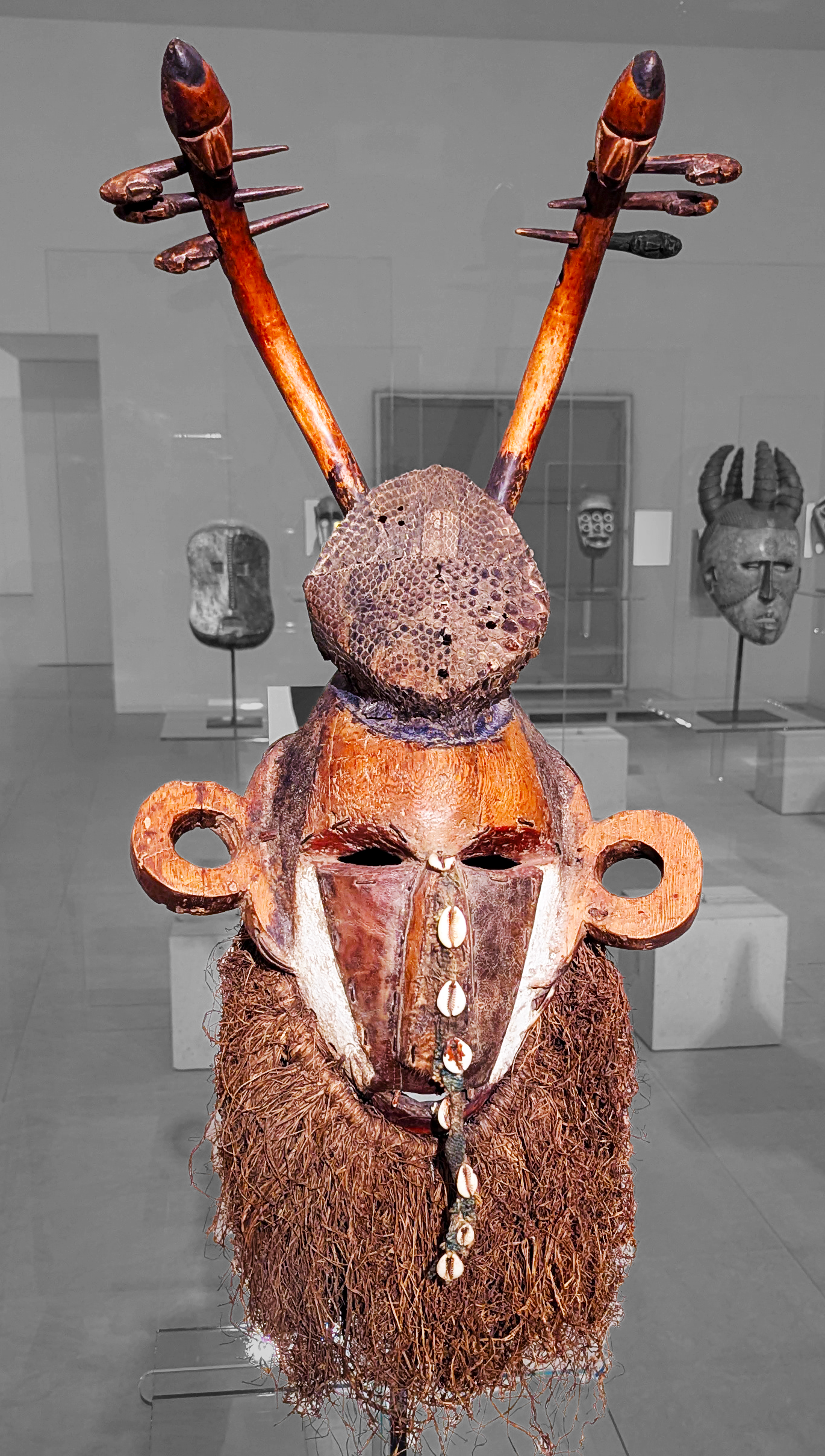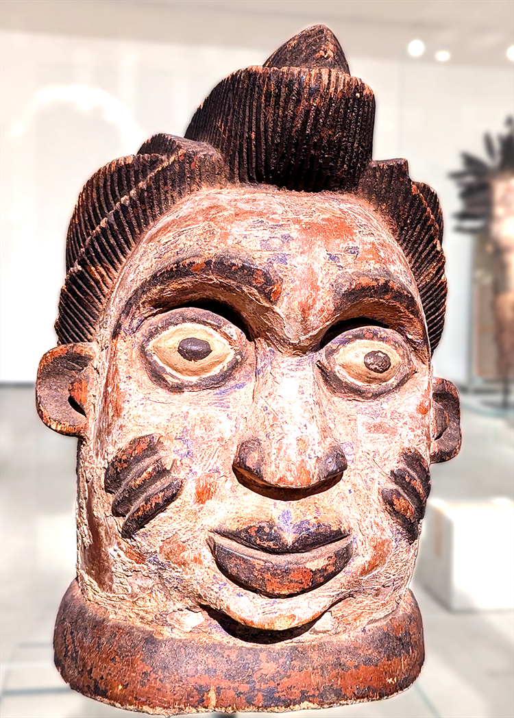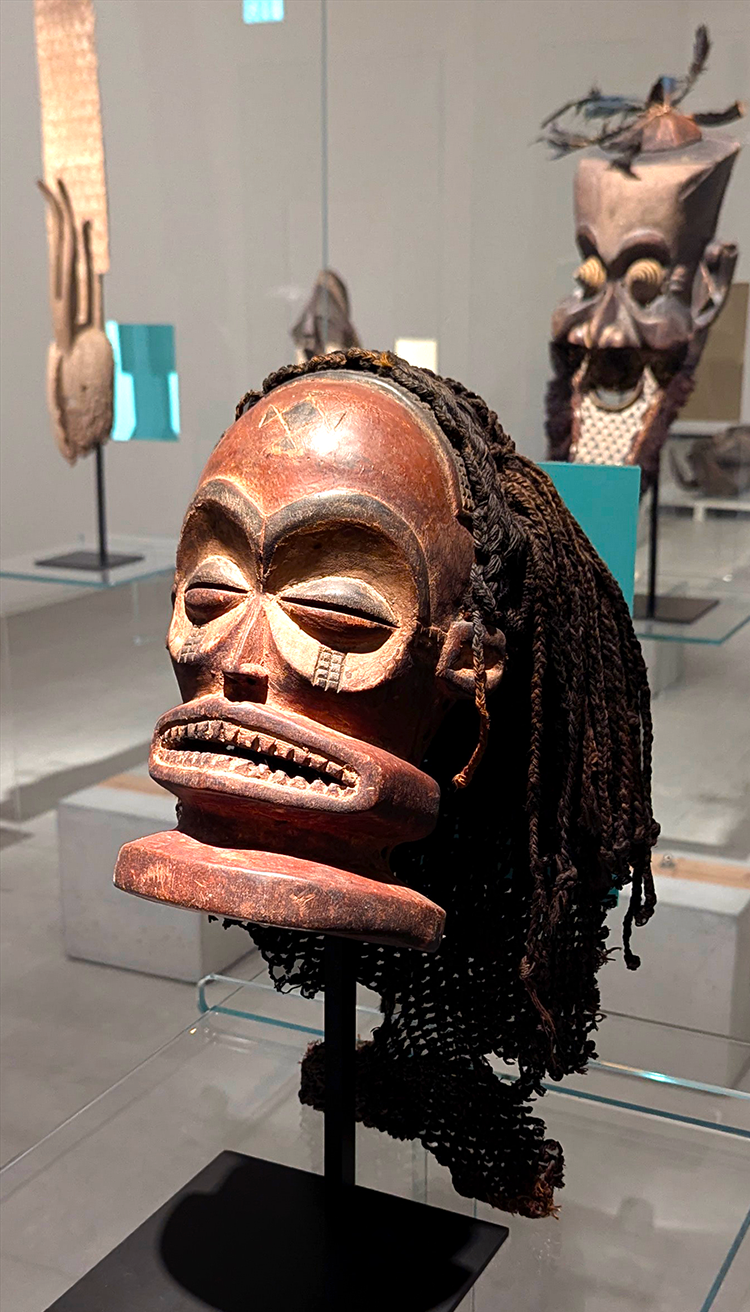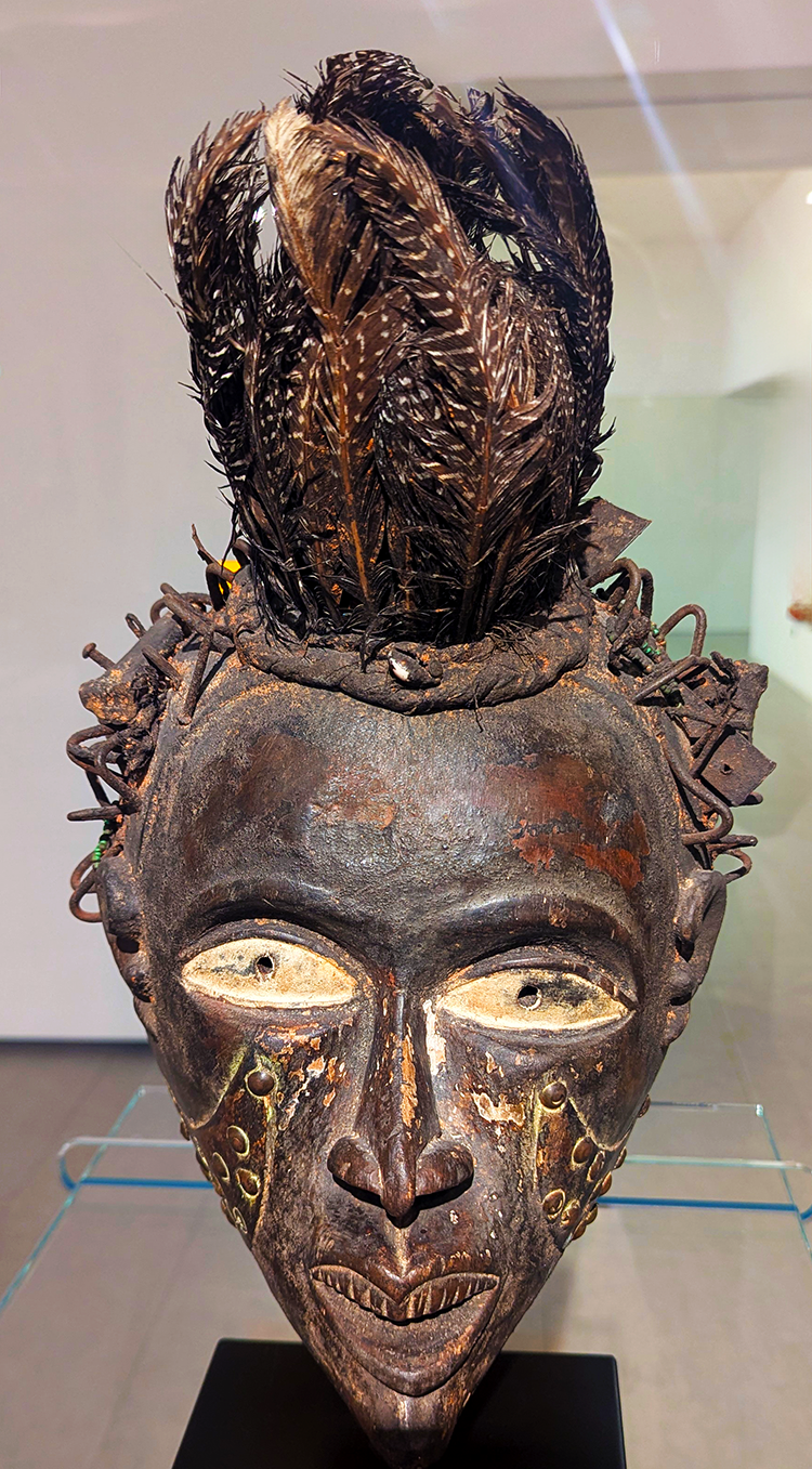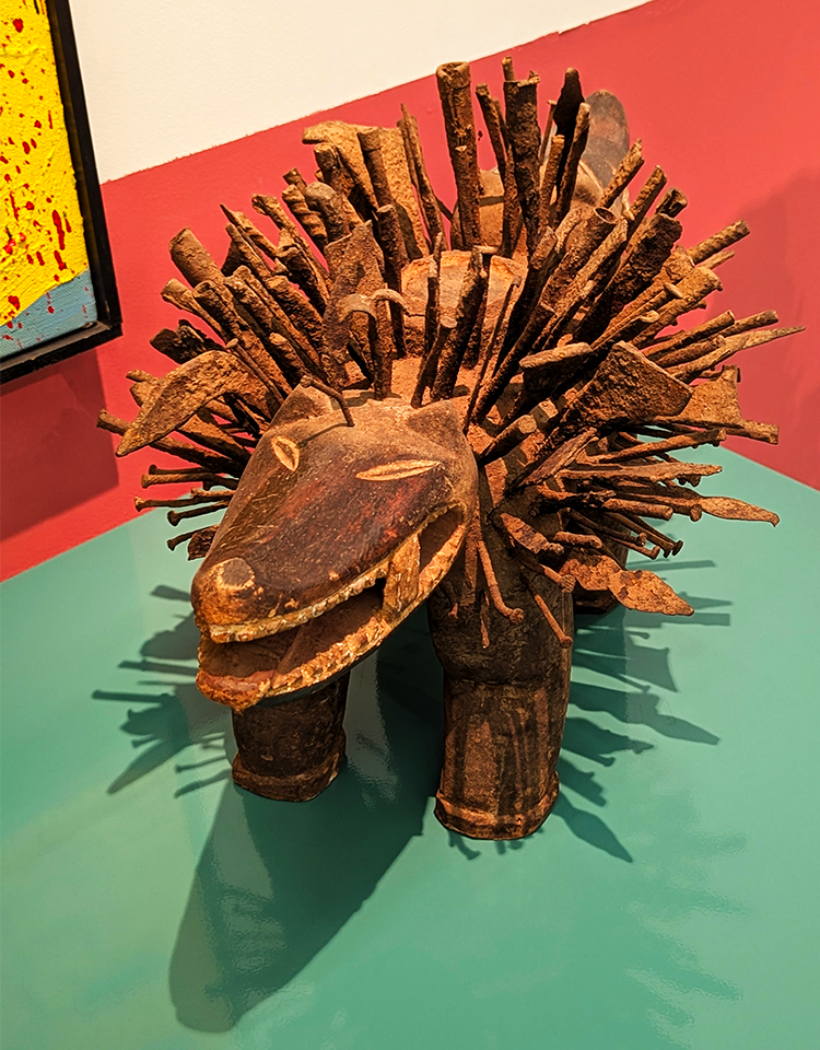 Above: Beaded Bamileke warrior, Cameroon, Central Africa, on exhibit in Jose de Guimaraes International Arts Center.