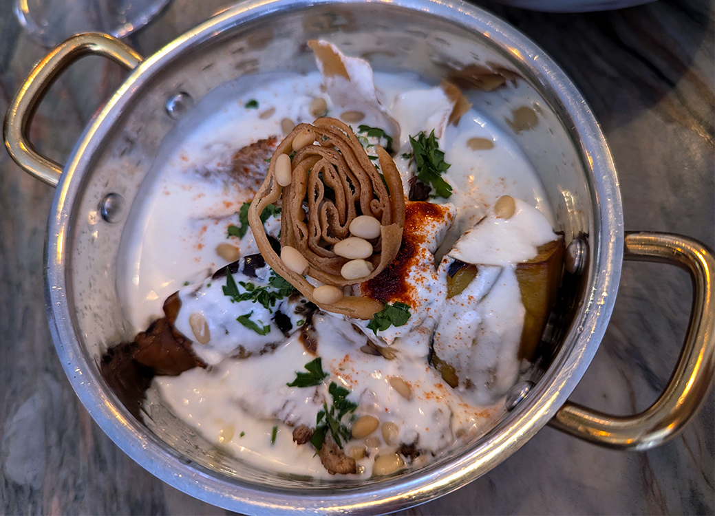 The star of the show, a dish I would happily order over and over again, was the house specialty, fattete Assanabel. The English translation on the menu describes this simply as eggplant, bread, yogurt and meat. Yawn. Don’t be fooled, it is absolutely luscious. The only way I could describe it adequately is to show you the complexities of its preparation via Assanabel’s own Instagram post.