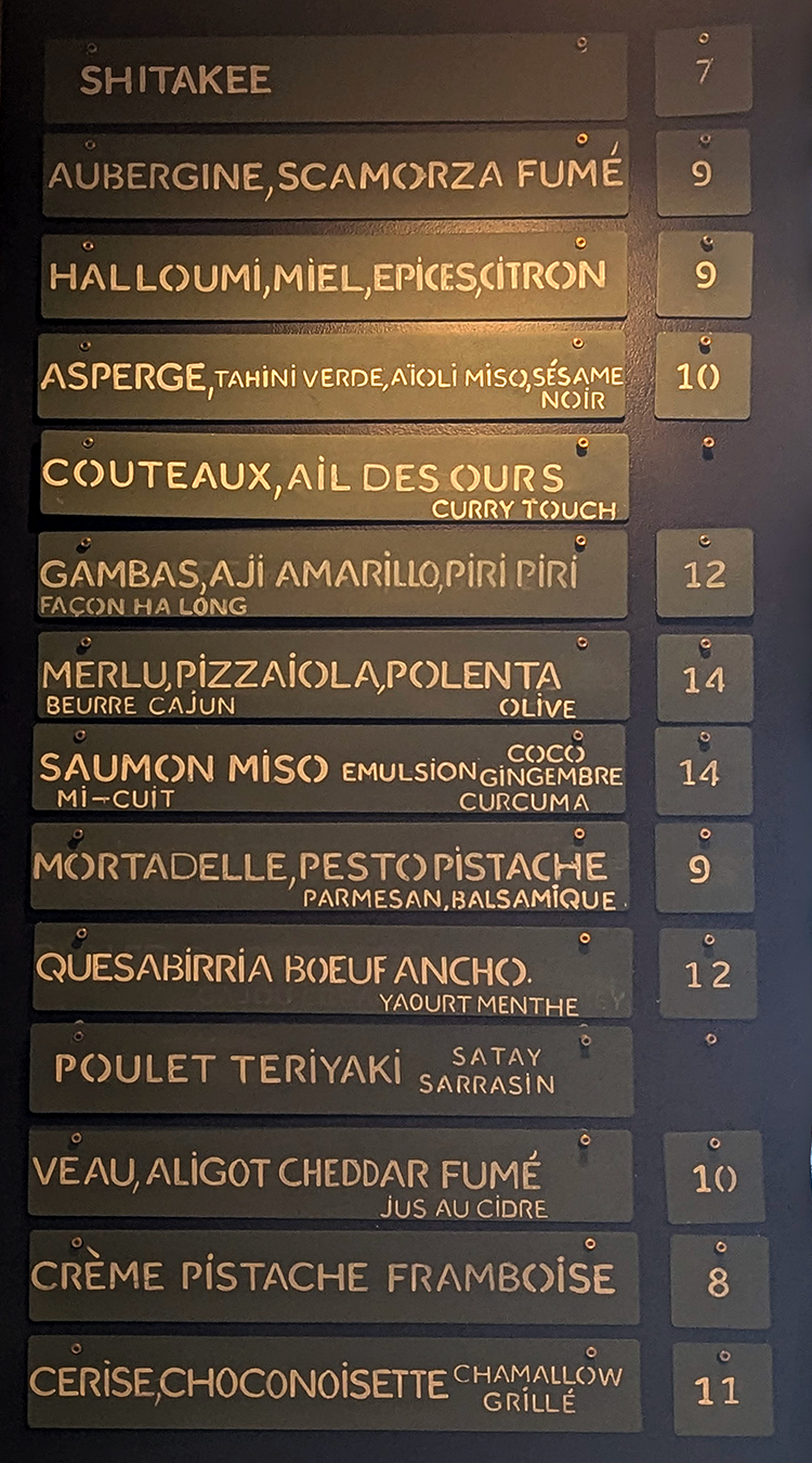 Not on a main street or adjacent to any tourist attraction, Binchotan (14th Arrondissement) must rely on word of mouth. With its turntable spinning 1970s’ classics, the casualness of this charcoal grill does not reflect its unexpected treatment of seasonal ingredients.