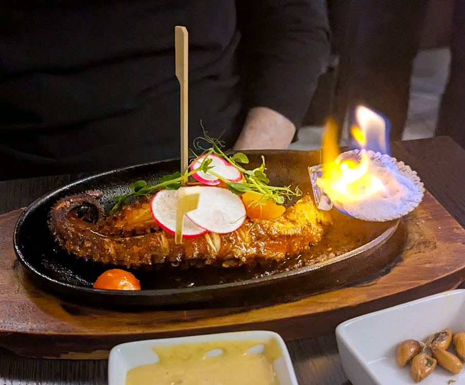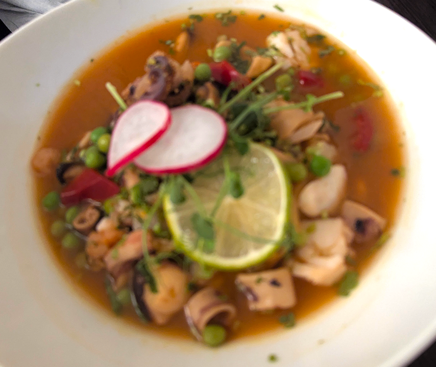 In need of a Peruvian fix, we found El Picaflor (5th Arrondissement) near the Jardin des Plantes. We started off with a pair of Pisco sours and a nice ceviche. Parihuela is a traditional seafood soup with a rich fish broth. The showpiece was a searing hot platter of caramelized grilled octopus, as delicious as it looks.
