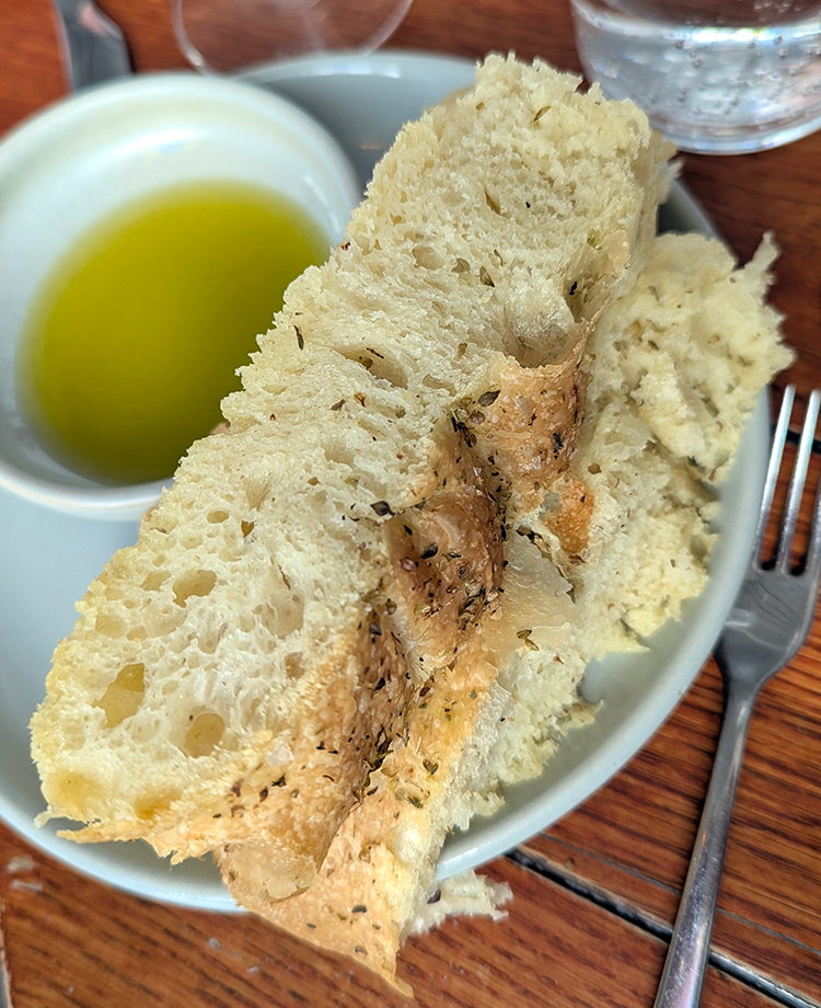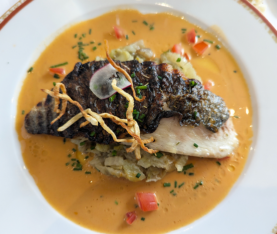 On our way back and forth from the Fondation Louis Vuitton (16th Arrondissement), a museum designed by Frank Gehry (1929-2025), we decided to walk through a portion of Bois de Boulogne and the affluent suburb of Neuilly-sur-Seine. This led us to lunch at Terzo Ristorante, a pleasant Italian restaurant if you want to explore that part of western Paris. The lunch specials we tried that day had a Sicilian accent – spaghetti with anchovies and bottarga; and European bass, or branzino, fillet with an olive caponata on the side and its top.
