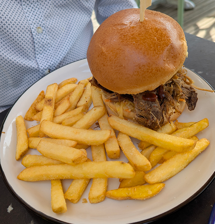 Escaping the crowded banks of the Seine by exploring northward along the pathways of Canal Saint-Martin and Canal de l’Ourcq, we found linear parks where Parisians hang out. Our walk led us straight into Paname Brewing Company (19th Arrondissement). Of course, we were ready to quench our thirst with a beer, but we were surprised by the brewpub’s food. Both the lentil salad and lamb barbeque sandwich were delicious. The image below is the view from Paname’s laidback patio.