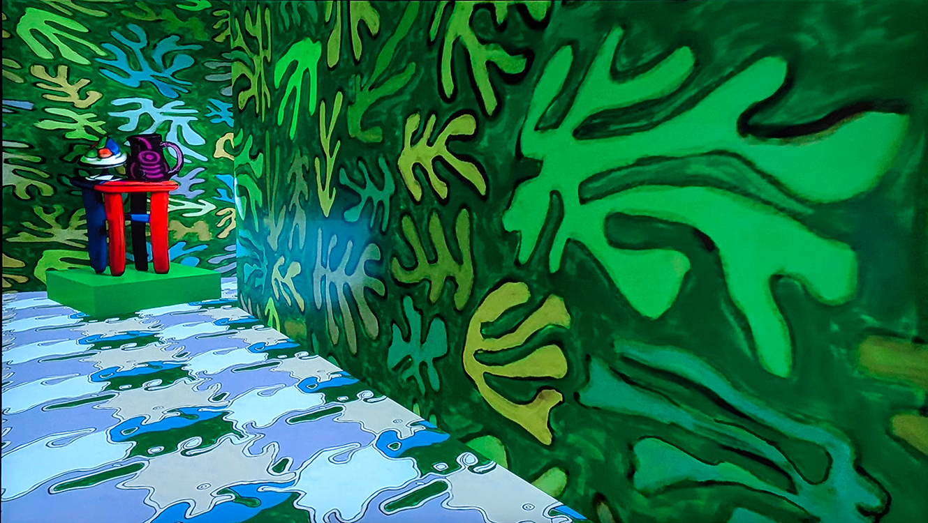Above: Screen grabs from “The Ruins,” Claudia Hart (1955-), 2020.