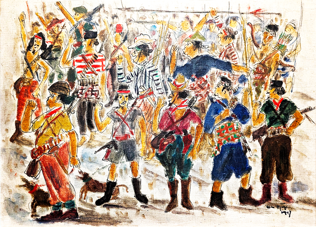 Above: “Revolution,” Otto Djaya (1916-2002), oil and ink on canvas, 1947