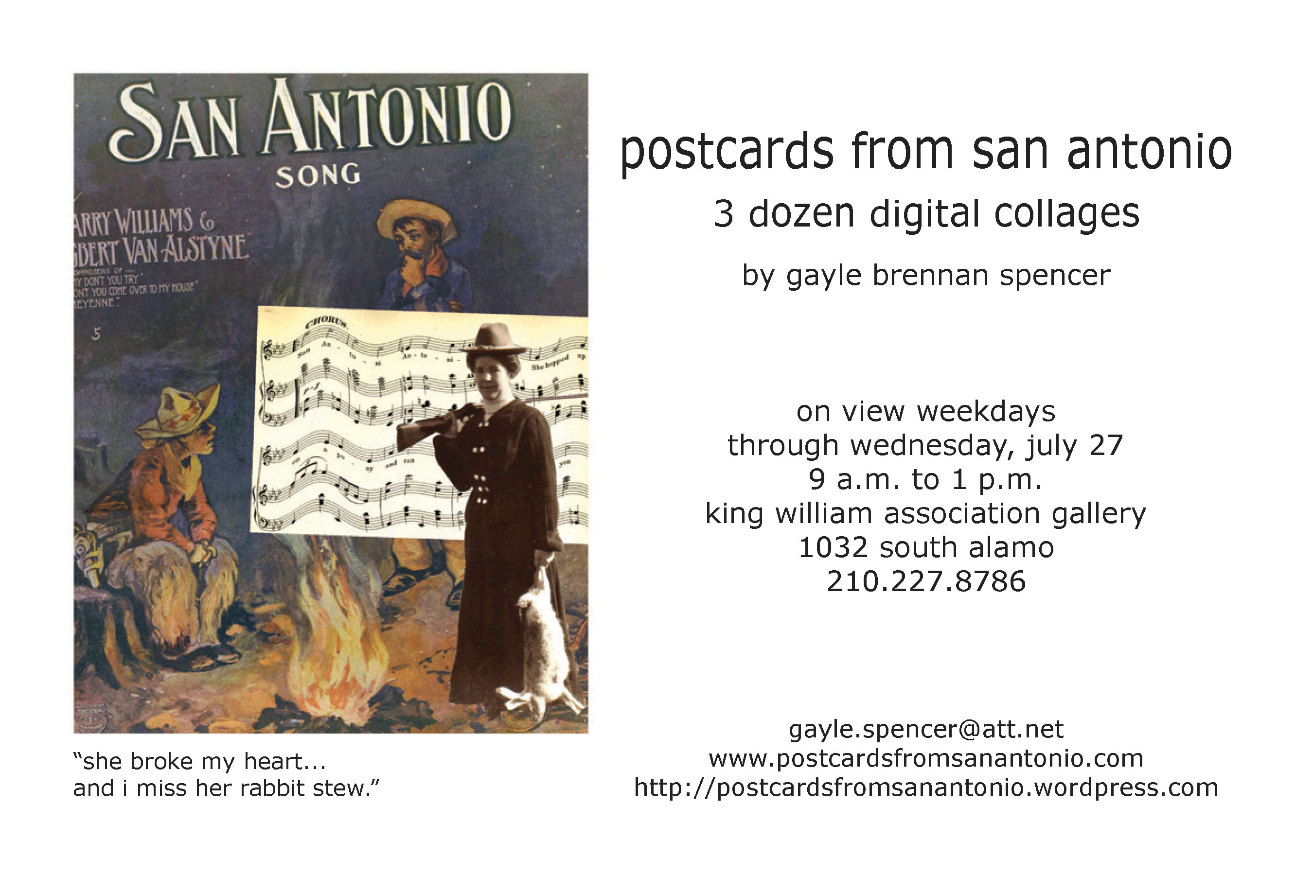 “Mission San Antonio de Valero Missing,” digital collage on display at King William Art through July 27, view online at http://postcardssanantonio.com.