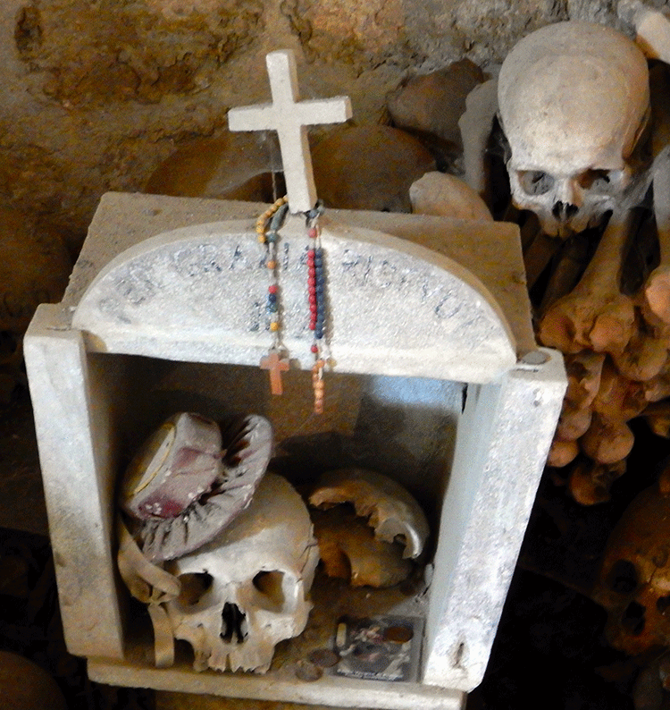 Some refer to those practitioners as members of a cult of the dead. Results of their assistance in caring for the skulls of those who died lacking requisite sacraments regarded as keys to heaven were seen in an earlier post about Cimetero delle Fontanelle.