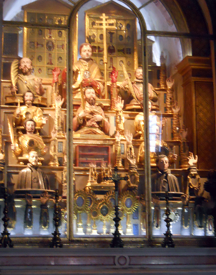 This means you can visit a little gem such as the Convento de las Duenas virtually alone. You can stroll through slowly admiring the quirky grotesque carvings atop the columns and pausing before the collection of reliquaries containing bits and pieces of clothing of saints, or even parts of saints themselves.