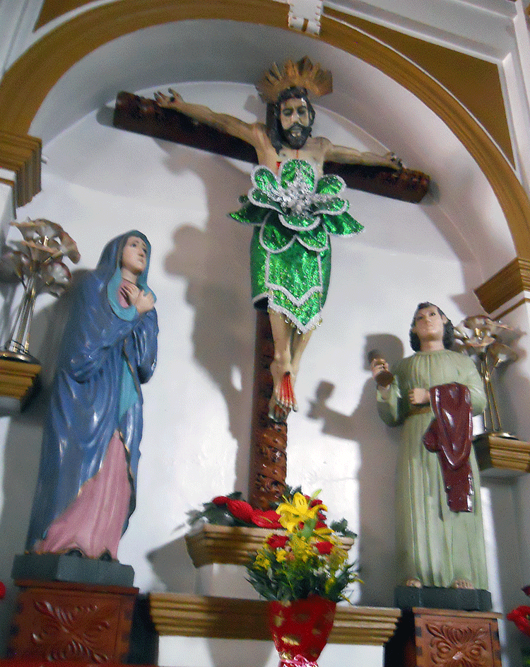 I went downhill from there, as though viewing art through Max’s eyes. Or through the eyes of the bad-behaving putti in Poussin’s “Baccanale.” There was a cute little rooster perched under Jesus’ feet nailed to the cross. Those limbo-like babies awkwardly cradled in Saint Michael’s scales, and the devil’s head spilling out over the frame under his red slippers. The devil wears polka-dots? Were those seemingly anachronistic stretch white undies added to Saint Sebastian later?