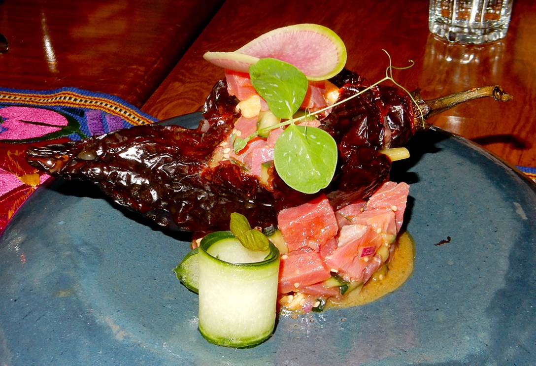 Enjoyed new menu items at the upscale Mestizo. Pulpo carpaccio was sweet and tender, and the tuna “carnitas” tacos were a nice change.