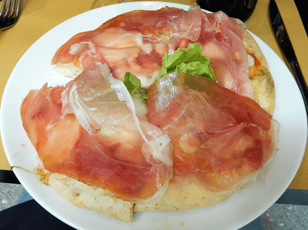 Normally, I wouldn’t include a first-stop restaurant selected only because it was nearby and we were starving, but Tiffany Wine Bar offers a surprisingly nice selection of salads. Thinly sliced bresaola, cured beef, served with fresh fruit and radicchio presents an ideal counter to so many regional heavy dishes. Tiffany also sits at a great corner for watching locals walk and pedal by on the narrow streets.