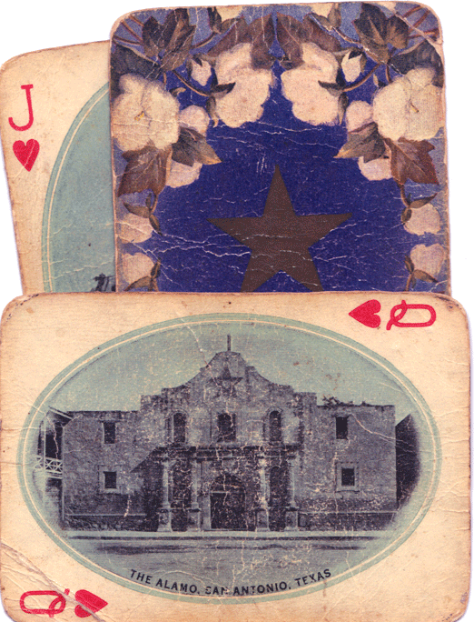 1936 Texas Centennial No 5, “The Alamo always Trumps,” digital collage by Gayle Brennan Spencer, Visit http://postcardssanantonio.com.