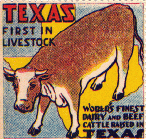 But this winter, a sheet with the cow for which I yearned and 29 other cinderella stamps promoting the 1936 Centennial of Texas independence found the chink in my common-sense fence. This was a whole herd of stamps exuberantly proclaiming the magnificent majesty of the great state of Texas. They represented the incredible boosterism and spirit of an era I wanted to lasso.