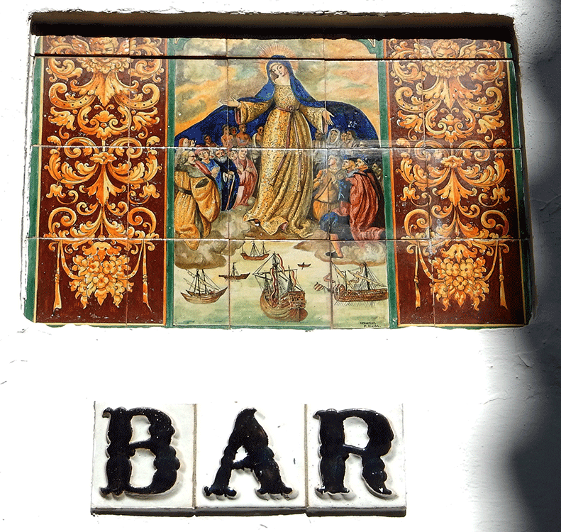 Ornately crowned Virgens appear front and center in displays in numerous shops, but the most tantalizing windows are those of La Campana, a confectionary store operating in Sevilla since 1885. Chocolate and bon bon Nazarenos parade side by side next to elaborately crafted candied pasos. Could not help wondering about the proper etiquette for eating a chocolate Nazareno. Feet first? The way I used to nibble at chocolate rabbits when Mother wasn’t looking, thinking she would assume the bunnies merely were sinking deeper in the shiny green grass of the basket?