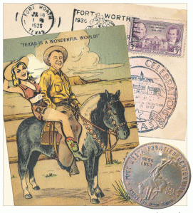 But this winter, a sheet with the cow for which I yearned and 29 other cinderella stamps promoting the 1936 Centennial of Texas independence found the chink in my common-sense fence. This was a whole herd of stamps exuberantly proclaiming the magnificent majesty of the great state of Texas. They represented the incredible boosterism and spirit of an era I wanted to lasso.